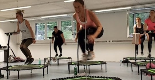 Jumping ist ein dynamisches Fitnesstraining, auf eigens entwickelten Trampolinen. Das Training benutzt ausser anderem traditionelle Aerobic-Schritte, die allerdings durch den federnden Untergrund gelenkschonend ausgeführt werden. Jeder auf seinem Trampolin und doch in einer Gruppe in der Begleitung von motovierender Musik.
