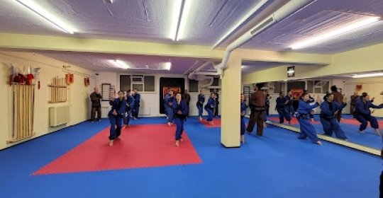 Trainingsraum einer traditionellen vietnamesischen Kampfkunst, Võ-Viêtnam. Unser Schulname ist Sơn Lang Quyền Thuật, gegründet von Meister Nguyen Duc Moc.